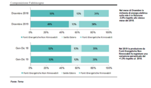 Secondo quanto rilevato da Terna, infine, l’energia prodotta da fonti di rinnovabili in tutto il 2019 ha coperto il 35% del fabbisogno elettrico complessivo, in linea con i valori registrati nel 2018.