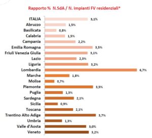 Analizzando i dati regionali, la Lombardia è la regione con il maggior numero di sistemi installati (7.524 per una potenza di 30,1 MW e capacità di 57,6 MWh) seguita da Veneto (3.397 unità per una potenza di 15,2 MW e capacità di 24,8 MWh), e da Emilia Romagna (2.594 sistemi di storage per una potenza di 12,3 MW e capacità di 30,9 MW.