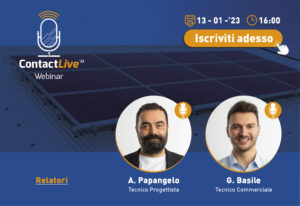 A condurre il webinar saranno Antonio Papangelo, tecnico progettista, e Giuseppe Basile, tecnico commerciale. I due relatori, oltre a esporre le caratteristiche dei sistemi, affronteranno anche tematiche tra cui la corretta installazione dei nuovi moduli fotovoltaici di grandi dimensioni e la sempre più crescente richiesta di prodotto, assistenza tecnica e supporto post vendita, per far fronte all’ulteriore boom di impianti da realizzare nel corso dell’anno appena iniziato.