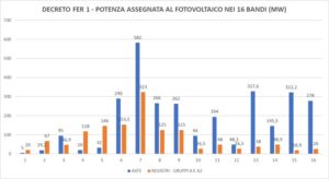 Si chiude quindi il meccanismo avviato a settembre 2019. Complessivamente, nei sedici bandi il solare si è aggiudicato circa 3 GW per la procedura ad aste, e 1,3 GW per i registri.