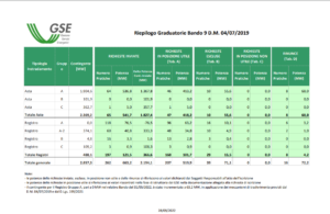 Nel gruppo A rientrano in graduatoria 41 impianti fotovoltaici per 262 MW (erano 266 MW nell’ottavo bando). Rientra nella lista, inoltre, un maxi impianti da 85 MW.