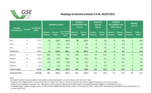 Nel gruppo B, che comprende gli impianti idroelettrici e a gas residuati dei processi di depurazione, sono stati ammessi a registro 16,2 MW di impianti su 10 MW a disposizione, mentre nel gruppo C, che annovera gli impianti oggetto di rifacimento totale o parziale eolici onshore, idroelettrici, a gas residuati dei processi di depurazione, sono stati ammessi circa 1 MW su 25,3 MW.