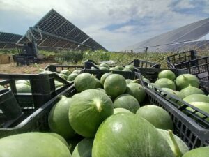 Almeno per le colture estive come pomodori, angurie, meloni, peperoni, cetrioli e zucchine, la resa appare pienamente in linea con quella del campo aperto». Anche la produzione energetica dell’impianto si sta confermando molto positiva, con circa 2.000 kWh annui/kWp a testimonianza dell’efficacia della scelta progettuale.