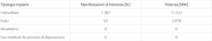 Ricordiamo che nella prima procedura per gli impianti con potenza superiore a 1 MW il contingente di potenza massimo relativo al solare è di 8 GW. Per l’eolico, invece, sono 93 le manifestazioni di interesse per un totale di circa 3 GW.