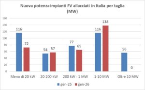 Fotovoltaico, andamento per taglia