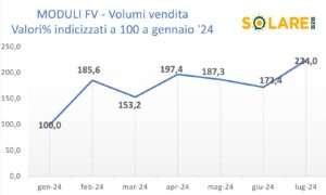 Nel mese di luglio 2024 le vendite di moduli fotovoltaici in Italia hanno registrato una discreta impennata, pari a +30% rispetto al mese precedente.