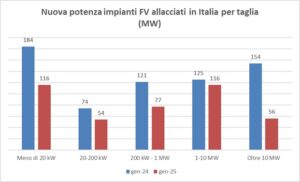 Complessivamente, a fine gennaio 2025 si contavano in Italia 1,9 milioni di impianti fotovoltaici per una potenza totale di circa 37,5 GW.