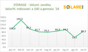 Anche per i sistemi di accumulo si presenta la stessa situazione dei moduli: le vendite in Italia sono tornate al livello della scorsa primavera, ma inferiori al mese di luglio. In questo caso il confronto tra gli ultimi due trimestri (escludendo il mese di agosto) presenta una crescita pari a +3%.