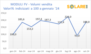 Se si confrontano gli ultimi tre mesi con l’esclusione di agosto (e quindi giugno – luglio – settembre 2024) con i precedenti tre mesi (marzo – aprile – maggio 2024) la crescita è pari a +9%. Questo è quanto emerge dalla rilevazione organizzata da Solare B2B sulla base dei volumi di vendita di otto tra i principali distributori specializzati in fotovoltaico. Questa rilevazione intende dare un benchmark di riferimento per quanto riguarda sia l’andamento delle vendite per categoria di prodotto sia gli scostamenti percentuali mese per mese.