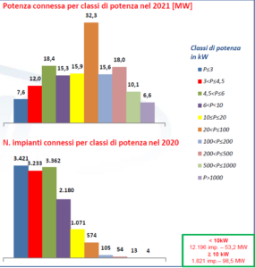 Prosegue comunque la crescita del solare in Italia: in tutti i mesi del 1° trimestre si è registrato un incremento dal 17% al 55% rispetto ai primi tre mesi del 2020. Analizzando la segmentazione per taglia, nei primi tre mesi dell’anno gli impianti fino ai 20 kWp hanno coperto il 45% della nuova potenza installata in Italia, mentre quelli di taglia superiore a 1 MW costituiscono solo il 4% delle nuove connessioni. Della taglia residenziale, crescono in particolare i nuovi impianti di potenza compresa tra 6 e 10 kWp (+86%) e 10-20 kWp (+50%). Dati in aumento anche sulle taglie 100-200 kW (+87%) e 500 kW – 1 MW (+274%). Calano invece le nuove installazioni utility scale superiori a 1 MWp (-64%), con solo quattro installazioni realizzate nei primi tre mesi.