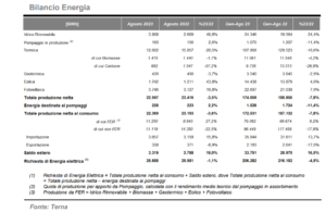 Tornando al mese di agosto, la domanda di energia elettrica in Italia è in calo dell’1,1% ed è soddisfatta per l’87,1% con la produzione nazionale e, per la quota restante, dal saldo dell’energia scambiata con l’estero. La produzione nazionale netta è risultata pari a 22,6 GWh, in diminuzione del 3,5% rispetto ad agosto 2022.