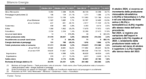 Secondo quanto emerge dalle stime di Terna, infine, considerando tutti i nuovi impianti da rinnovabili nei primi dieci mesi dell’anno, la nuova capacità in esercizio è aumentata di 6.042 MW. Tale valore è superiore di 1.489 MW (+33%) rispetto allo stesso periodo dell’anno precedente e supera il dato dell’intero 2023, che era di 5.800 MW. Al 31 ottobre in Italia si registra una potenza da fonti rinnovabili allacciata di 75,2 GW, di cui 35,8 GW da solare e 12,9 GW da eolico.