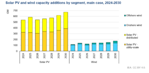 Il solare dovrebbe rappresentare l’80% dei 4,6 TW di impianti da fonti rinnovabili che saranno installati tra il 2025 e il 2030. Solo quest’anno, si potrebbe raggiungere il traguardo record di 600 GW di nuove installazioni fotovoltaiche.