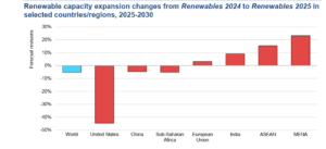 Negli Stati Uniti, il centro di ricerca prevede 140 GW di nuova potenza solare in meno nei prossimi cinque anni. Questo a causa dell’eliminazione anticipata dei crediti d’imposta, che negli ultimi anni avevano favorito lo sviluppo di nuovi impianti fotovoltaici di taglia residenziale. A ciò si aggiunge l’introduzione di restrizioni alle importazioni e alle autorizzazioni per lo sviluppo di progetti su terreni federali. Nonostante stia raggiungendo l’obiettivo di nuove installazioni eoliche e solari con cinque anni di anticipo, anche per la Cina l’IEA prevede 129 GW di nuova potenza da fonte solare in meno rispetto alle previsioni dello scorso anno. Tra le cause ci sarebbe il passaggio dalle tariffe fisse alle aste competitive che starebbe incidendo sulla redditività dei progetti, frenando gli investimenti in nuovi impianti utility scale.