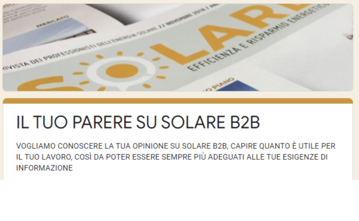 Al via il sondaggio “Il tuo parere su SolareB2B”