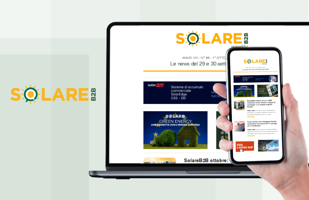 È disponibile il nuovo numero di SolareB2B Weekly, che propone la rubrica “Green Energy – Linea diretta con l’Unione europea”, lo spazio dedicato ai fatti e alle novità in materia di energie rinnovabili e sostenibilità ambientale nei principali Paesi dell’Unione. In primo piano le notizie sull’uscita del nuovo numero di ottobre di SolareB2B, e sulla pubblicazione in Gazzetta Ufficiale del decreto Conto Termico 3.0.