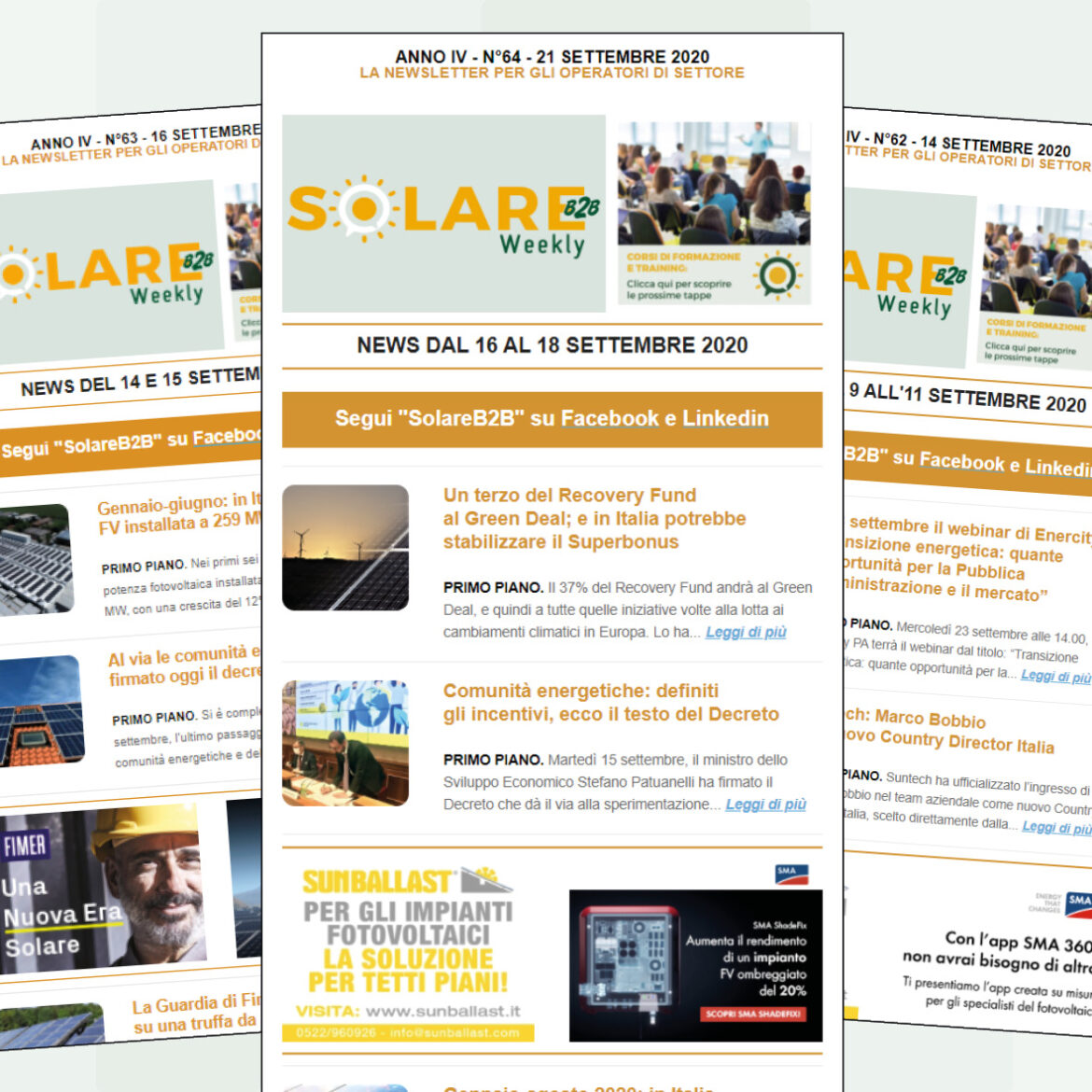 Sulla pagina Solare B2B Weekly del sito, nella sezione archivio, è possibile consultare le versioni precedenti.