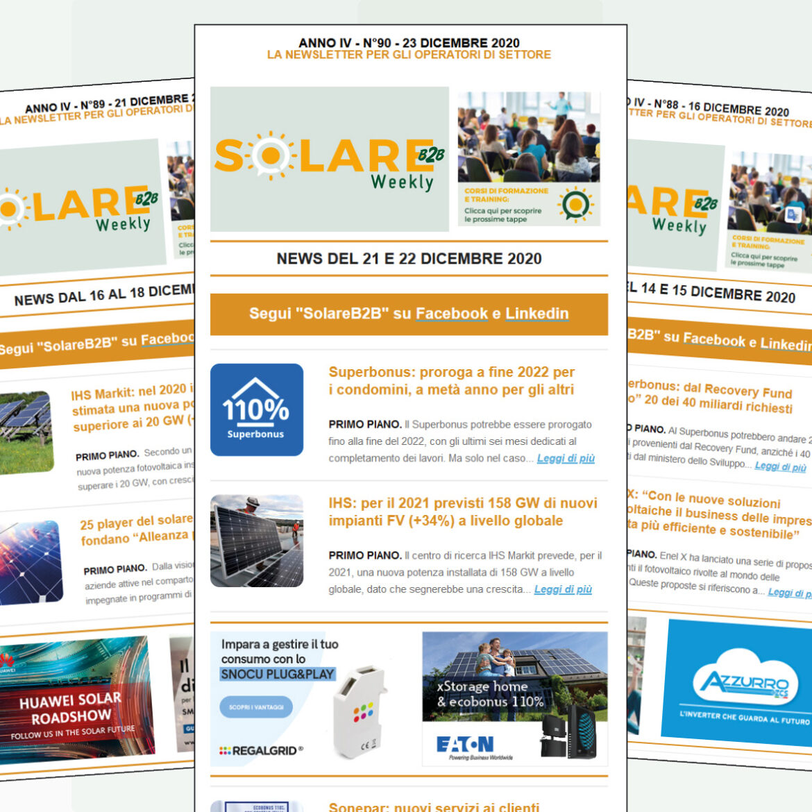 Sulla pagina Solare B2B Weekly del sito, nella sezione archivio, è invece possibile consultare le versioni precedenti.