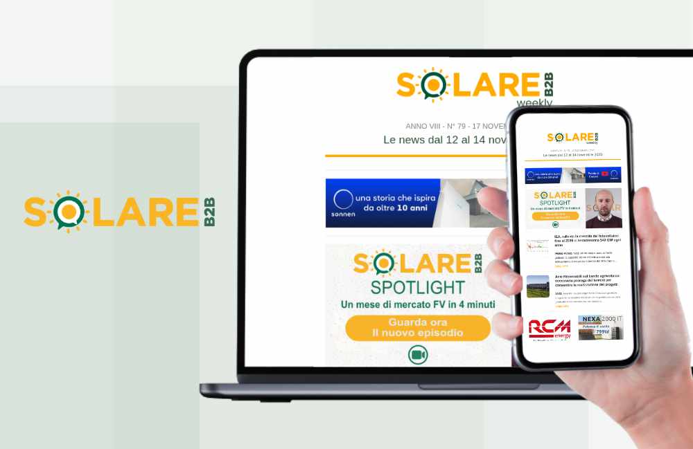 È disponibile il nuovo numero della newsletter SolareB2B Weekly, che ogni settimana propone le principali notizie del mercato del fotovoltaico e dell’efficienza energetica. In apertura la nuova puntata di Spotlight, la video rubrica mensile di SolareB2B sul mercato del fotovoltaico.