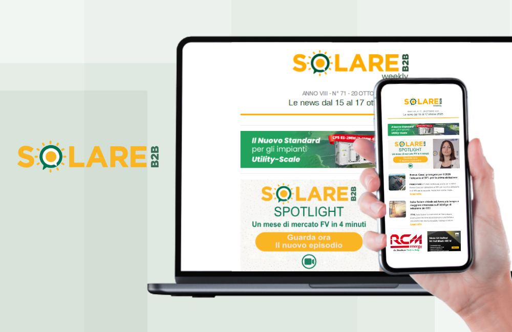 È disponibile il nuovo numero di SolareB2B Weekly, che ogni settimana propone le principali notizie del mercato del fotovoltaico e dell’efficienza energetica. In apertura il nuovo episodio di ottobre della rubrica video Spotlight. In primo piano la notizia sulla proroga anche per il 2026 del Bonus Casa con detrazione al 50% per la prima abitazione che include il fotovoltaico.