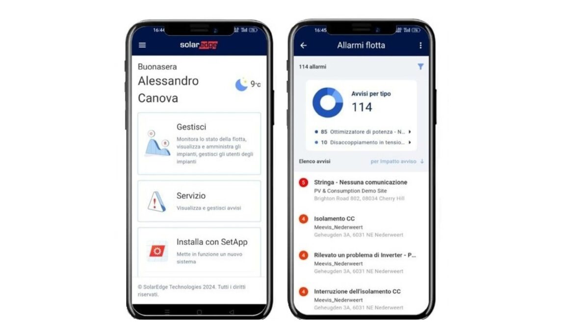 In riferimento al monitoraggio, per i siti commerciali e industriali, l’app fornisce indicatori di performance e metriche ambientali. Questo consente di offrire una visione più approfondita delle rese dei grandi impianti. Inoltre, gli installatori possono contattare i clienti direttamente dall’app, migliorando il servizio e l’assistenza.