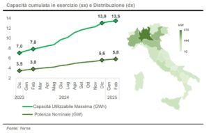 Nei primi due mesi del 2025 sono stati connessi in Italia 217 MW di nuovi sistemi di storage. Il dato segna una flessione del 38% rispetto ai 349 MW dello stesso periodo dell’anno precedente.