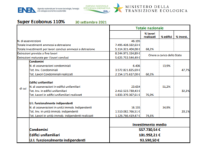 Da gennaio a settembre 2021 in Italia risultano incentivati 46.195 interventi edilizi con il Superbonus 110%, per circa 7,5 miliardi di euro investimenti. È quanto riportato nei giorni scorsi da Enea.
