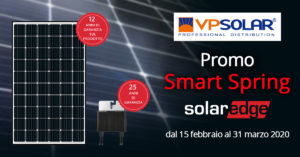 Dal 15 febbraio al 31 marzo VP Solar propone la promozione “Smart Spring” dedicata ai moduli smart di SolarEdge. L’obiettivo è quello di consentire agli installatori italiani di offrire ai propri clienti impianti con marchio SolarEdge beneficiando di scontistiche di favore per specifici volumi.
