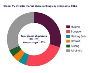 Nel 2024 Huawei si è collocata al primo posto nella classifica dei primi dieci produttori di inverter a livello globale. Le vendite del gruppo, per un totale di 176 GW, hanno coperto circa il 30% delle vendite totali nel mondo (27% nel 2023). È quanto riportato dal centro di ricerca Wood Mackenzie. Segue Sungrow, al secondo posto con 148 GW venduti (il 25% del totale). Secondo quanto riportato da Wood Mackenzie, le due società occupano le prime due posizioni del ranking da dieci anni consecutivi.